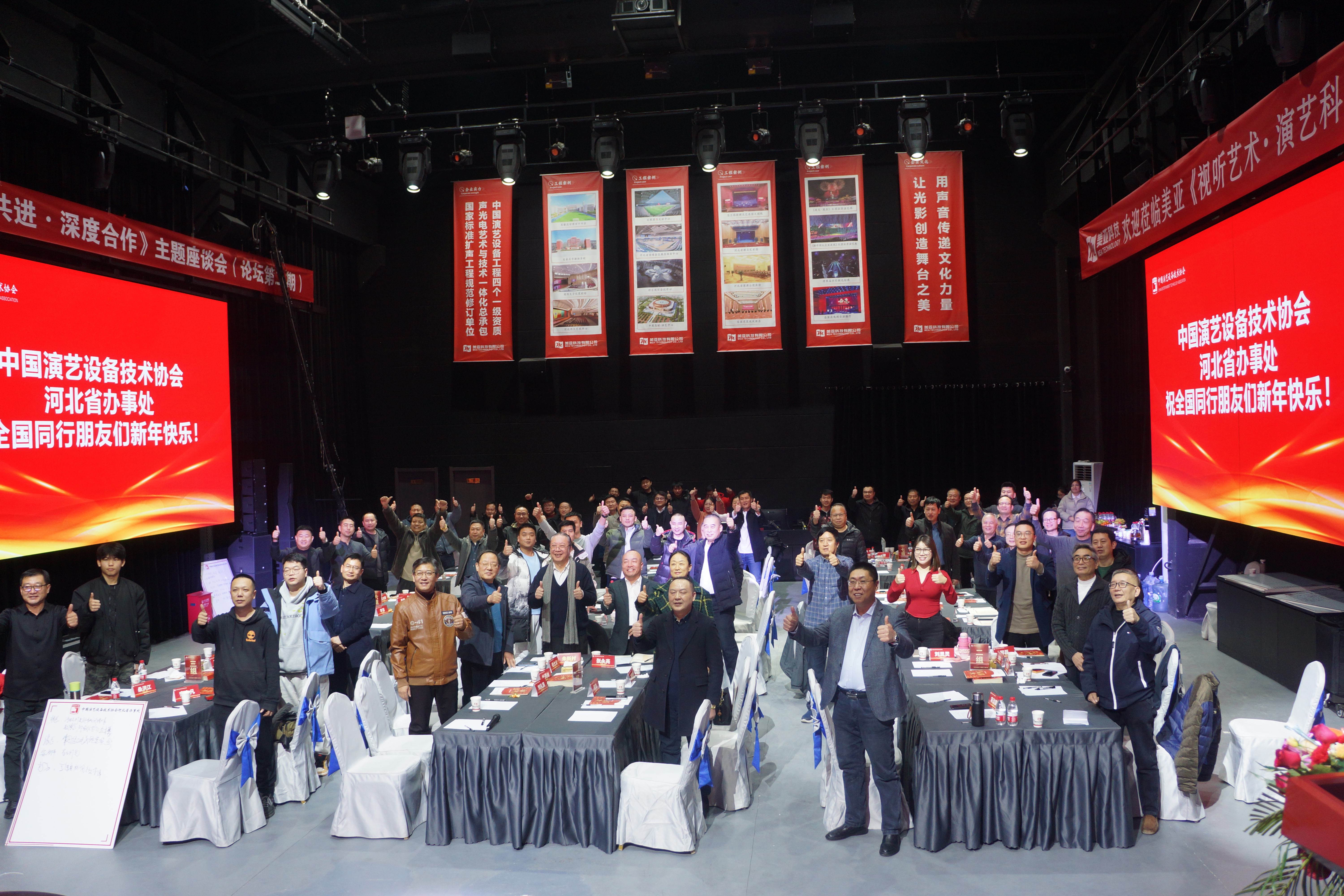 2025年1月4日,在中国演艺设备技术协会河北省办事处主办下,众多行业精英齐聚一堂,共同参与了以“并肩共进·深度合作”为主题的座谈会。此次会议汇聚了多家知名企业,为推动演艺设备行业的发展、促进技术交流与合作提供了良好的平台。