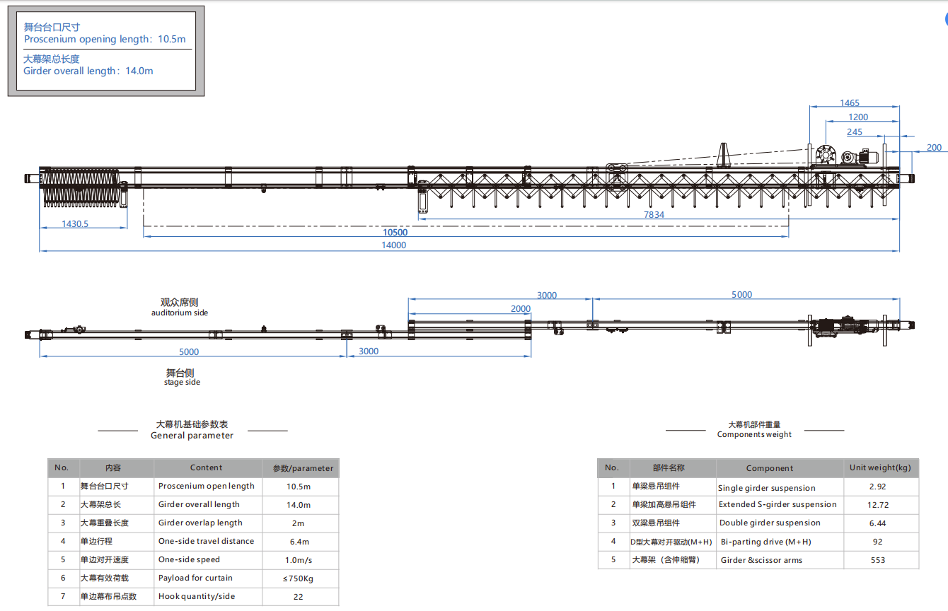 大幕机选型图 10.5m/14.0m