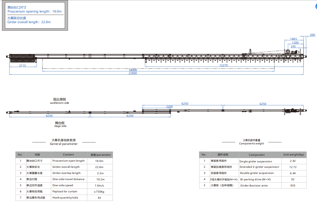 大幕机选型图 18.0m/22.8m